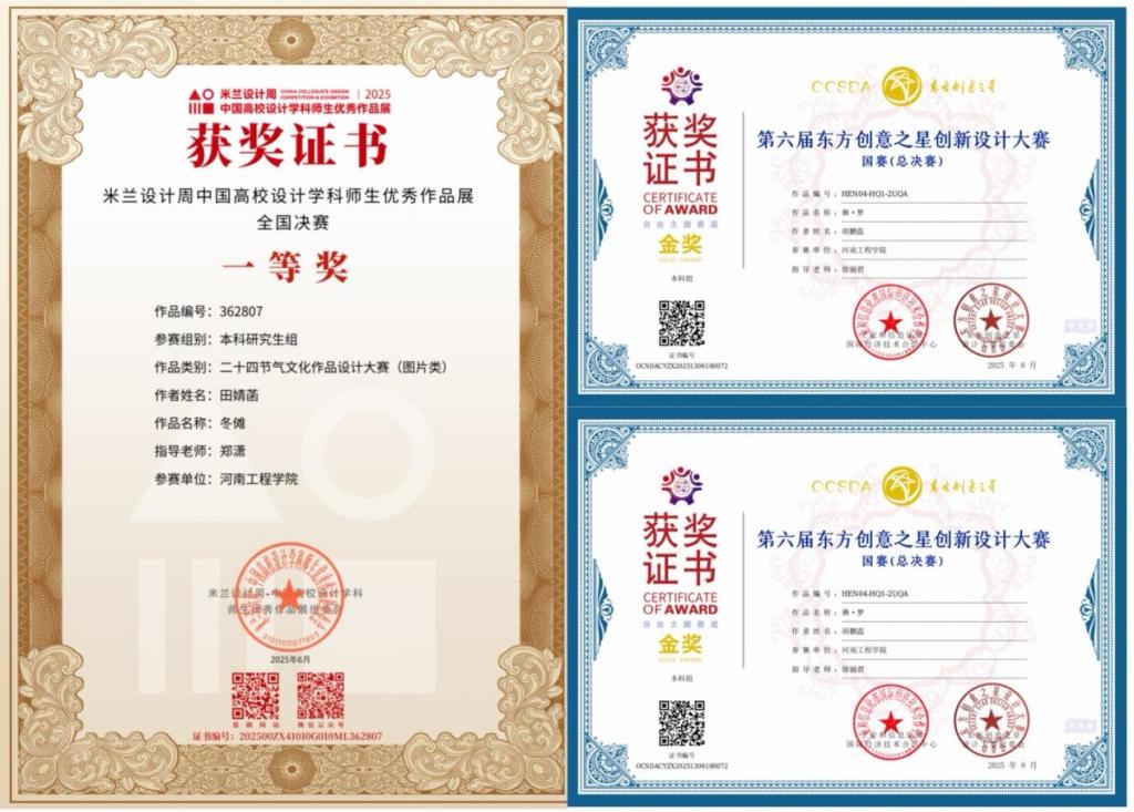 服装学院师生则在米兰设计周2025中国高校设计学科师生优秀作品展、第六届东方创意之星创新设计大赛等三项高水平赛事中大放异彩,累计斩获国家级奖项9项、省级奖项54项,以扎实的专业功底与创新视野赢得业界认可。