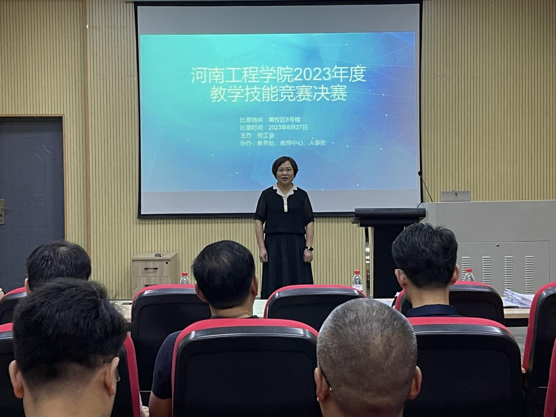 本届教学技能竞赛决赛于6月27日在我校南校区8号楼举行,副校长张铟参加了启动仪式并致辞。她阐述了教学在学校工作中的重要性,肯定了往年我校教师在全省教学技能竞赛中取得的成绩,并预祝今年参赛选手“秀技能水平 展师者风采”,取得更好的成绩。
