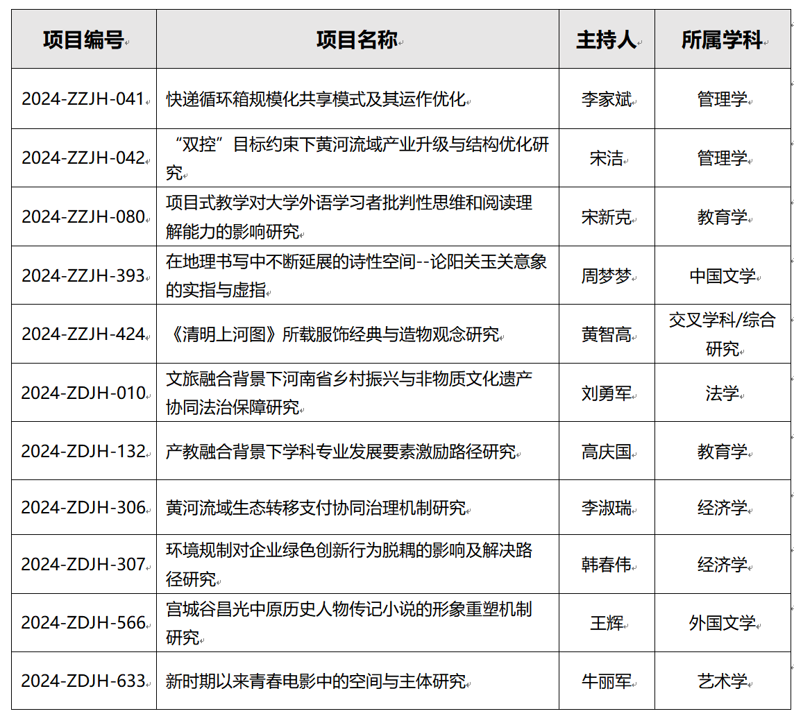 河南省高校人文社会科学研究项目覆盖面广、影响大,对高校人文社会学科的发展具有重要的示范和引导作用。2024年度河南省高校人文社会科学研究一般项目按照资助方式分为资助性计划和指导性计划。资助性计划项目的研究经费由省财政专项经费支持,每项资助经费2万元。