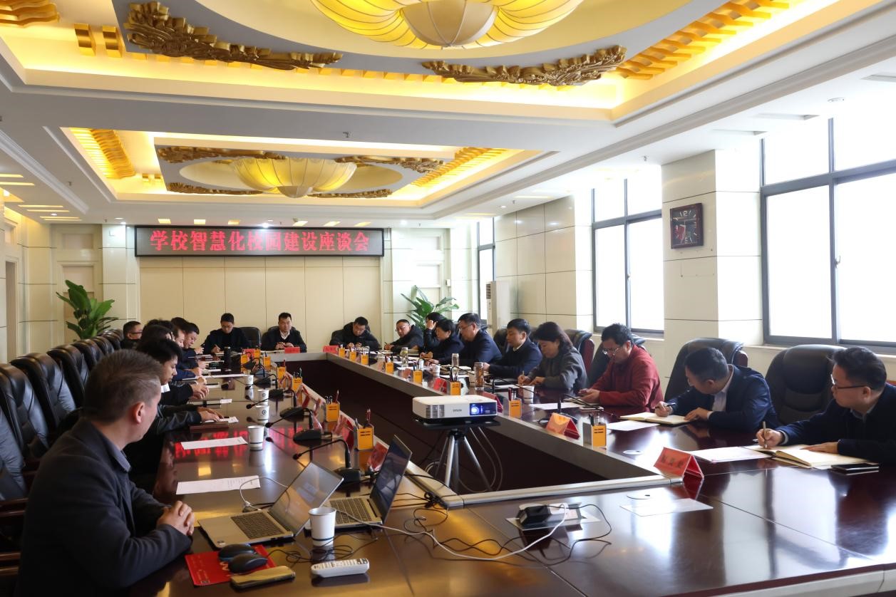 为落实国家教育数字化战略行动,大力推进教育信息化,推动数字赋能和智慧校园建设,根据校党委的工作部署,11月15日,我校在综合楼十二楼会议室召开智慧校园建设座谈会。会议邀请了精华教育科技股份有限公司董事长郭陶一行4人参加,校党委书记刘永涛、校长李利英出席了本次会议,会议由副校长张瑞林主持。