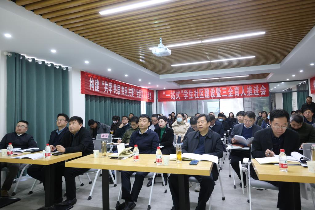 为推进“一站式”学生社区建设,深化三全育人、五育并举,11月17日,我校“一站式”学生社区建设暨三全育人推进会在南区泽苑二号楼“知行·初心讲演厅”举行。校党委书记刘永涛、副校长王生交出席并讲话,组织部、宣传部、学生工作部、校团委、教务处、“一站式”学生社区等部门负责人、相关二级学院党委书记、副书记、分团委书记及组织员代表和全体育人导师共同参会,会议分别由学生工作部部长介翔、校团委书记悦国宁主持。