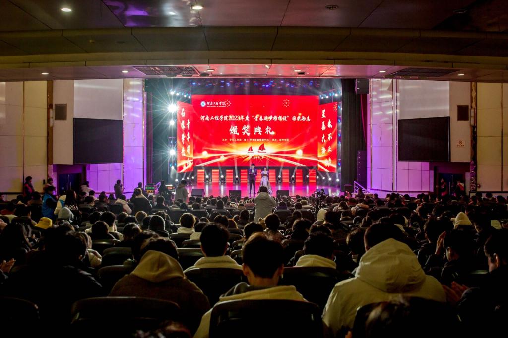 颁奖典礼在雄壮的国歌声中拉开了序幕。副校长王生交代表学校向所有获奖的同学们表示热烈祝贺,同时也对全体学生提出了几点希望:一要坚定信念,志存高远,奏响“河工强音”,要自觉做习近平新时代中国特色社会主义思想的坚定信仰者和忠实实践者,努力成长为堪当民族复兴重任的时代新人;二要求实创新,勇于担当,彰显“河工力量”,不断在实践中经风雨、见世面、长才干,努力练就堪当民族复兴重任的“宽肩膀”和“硬本领”;三要砥砺奋进、实干奋斗,书写“河工篇章”,在实现中国梦的生动实践中放飞青春梦想,在为人民利益的不懈奋斗中书写人生华章。