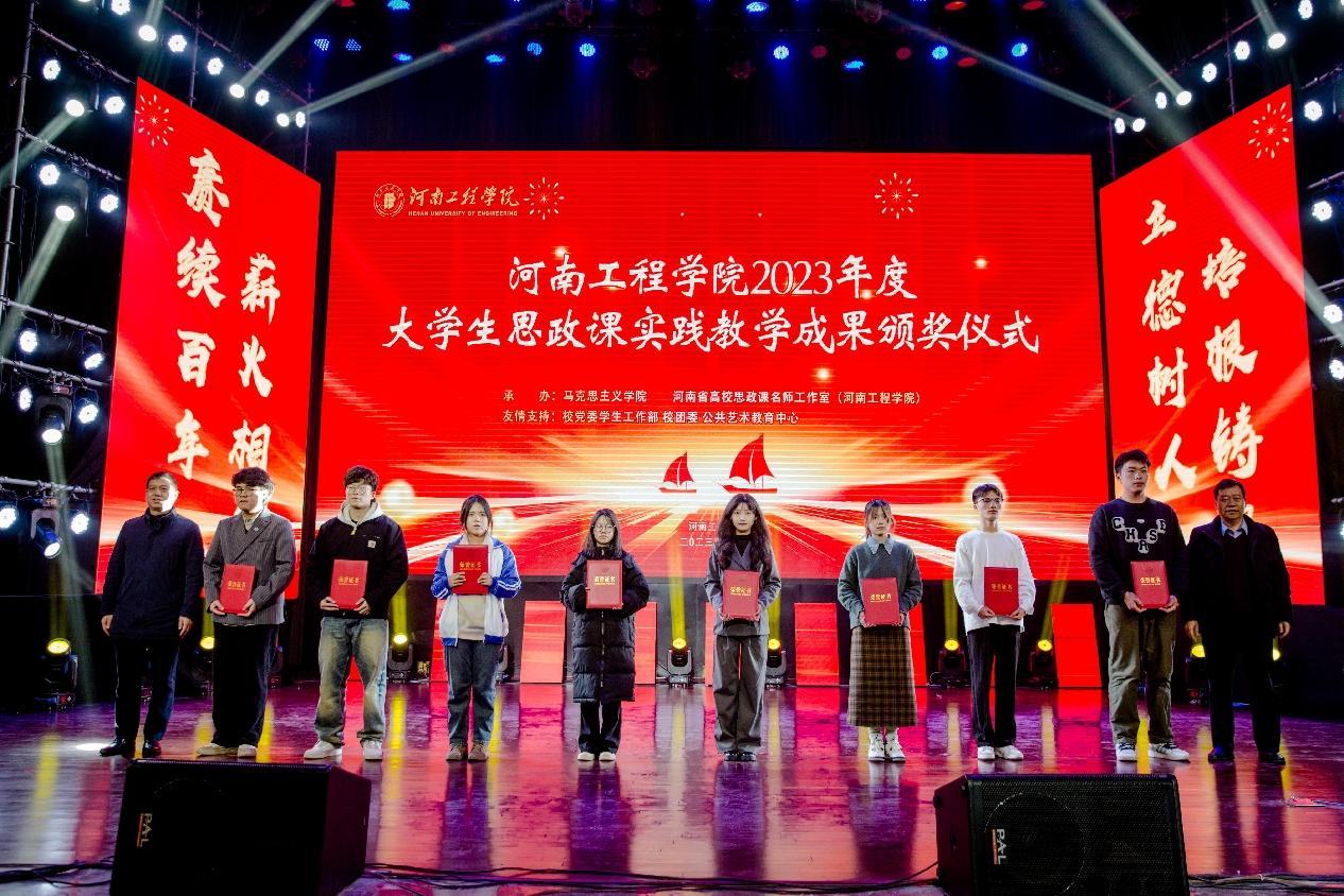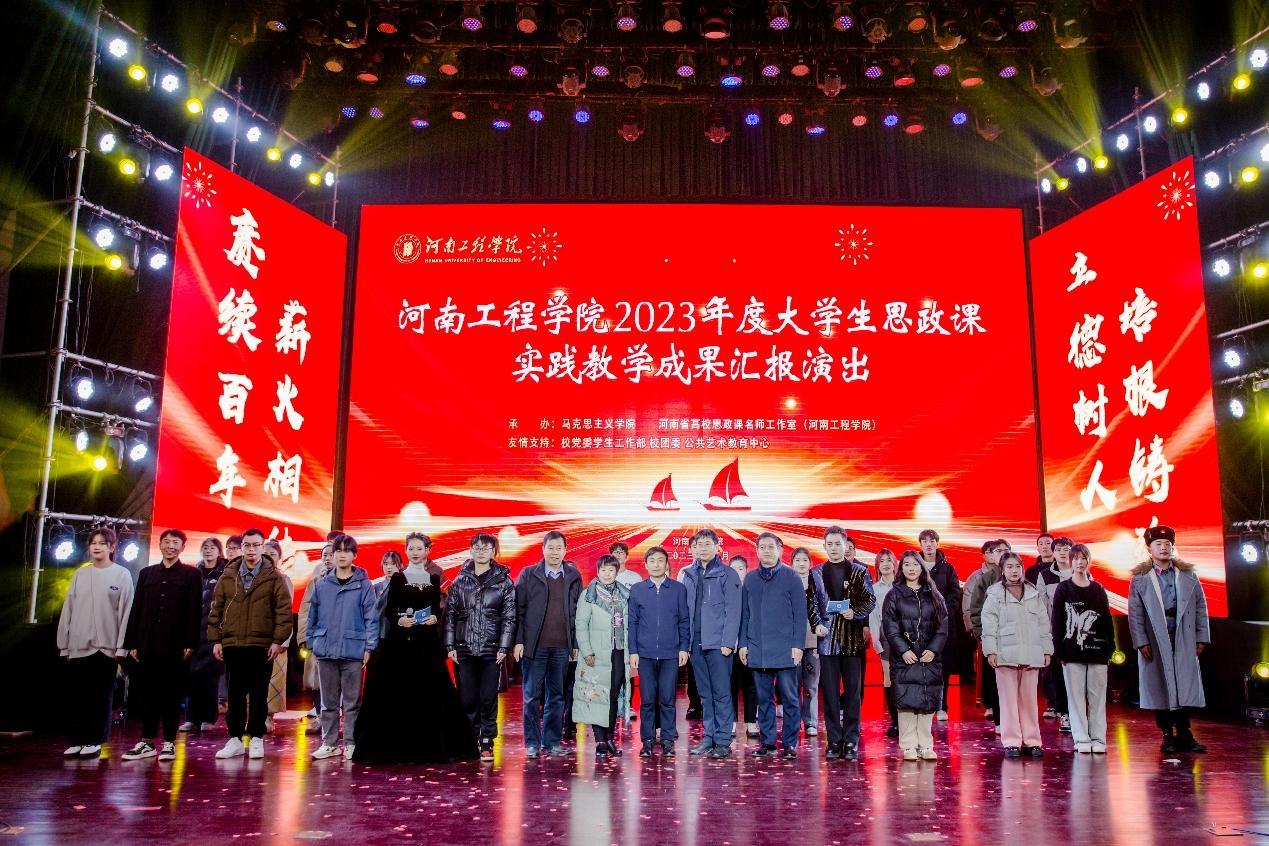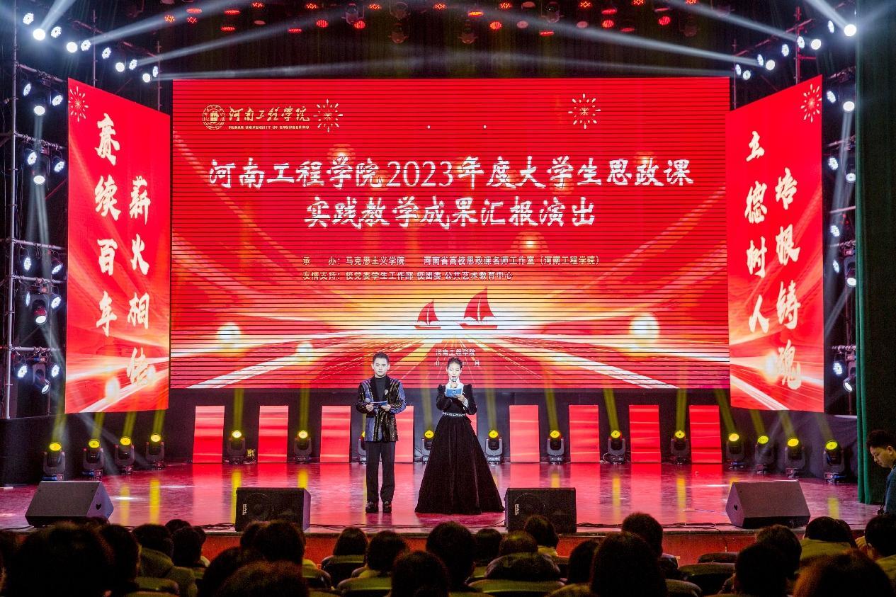 为推进学习贯彻习近平新时代中国特色社会主义思想走深走实,进一步发挥思政课立德树人的关键课程作用,不断增强思政课的亲和力和针对性,构建三全育人五育融通思想政治工作体系,高质量推进“大思政课”建设,由马克思主义学院和河南省高校思政名师工作室(华亿在线手机版(大中国区)) 共同策划筹办的“2023年度大学生思政课实践教学成果汇报演出”于12月13日下午在我校西区创新创业中心大礼堂举行。