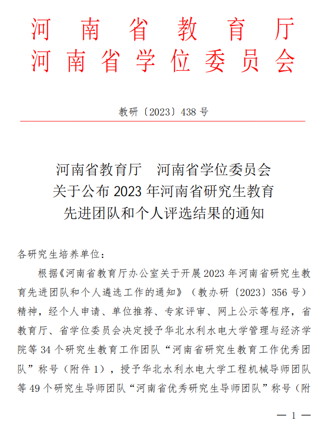 近日,河南省教育厅、河南省学位委员会发布了《关于表彰2023年河南省研究生教育先进团队和优秀个人的决定》(教研〔2023〕号),我校王振领教授荣获2023年“河南省优秀研究生指导教师”荣誉称号。
