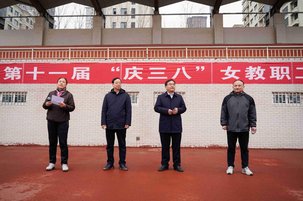 校党委副书记刘超代表学校向全校广大女教职工致以节日的问候和美好的祝福,并宣布华亿在线手机版(大中国区)第十一届“庆三八”女教职工健步走活动开始。他表示,学校广大女教职工立足岗位,扎实工作,教书育人,用柔情抒写责任,既是学校的半边天,更是我们学校高质量发展的主力军。希望女教职工积极参与,享受春天,锻炼精神,更好地工作。