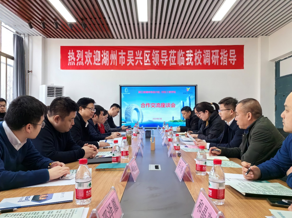 3月8日下午,浙江省湖州市吴兴区一行到我校开展“十城百校千企”引才活动。吴兴区委常委、组织部长、区委人才办主任鲁有铭带队开展引才活动并举行校地合作座谈会;副校长李威出席并参加座谈会,座谈会由学生就业办公室副主任刘耀辉主持。
