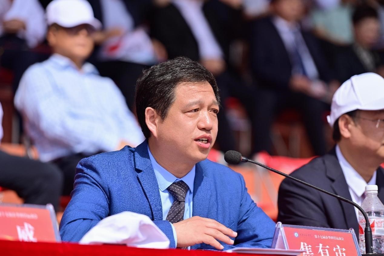 副校长焦有宙致开幕词,他代表学校向运动会的顺利召开表示热烈祝贺,并向全体运动员、裁判员和筹备本届运动会的工作人员致以亲切的问候和衷心的感谢。“心智源于历练,生命在于运动”。他指出,学校体育工作是精神文明和校园文化建设的重要组成部分,它对于强健体魄、发展意志品质、培养合作意识、增强集体荣誉感,具有重要促进作用。他强调,希望全校师生员工,遵守大会纪律,服从大会安排,做文明观众,争创文明集体。通过全校师生的共同努力,将本届运动会办成一场文明、团结、拼搏、精彩纷呈的体育盛会,并预祝本届运动会圆满成功,各代表队取得优异成绩。