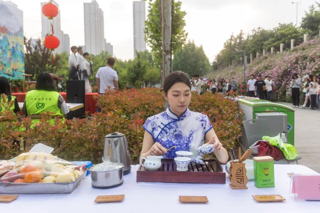 除了赏花拍照,文化节现场还设置了丰富多彩的活动。学校食堂精心准备的特色小吃吸引了众多师生品尝美食,跳蚤集市则为大家提供了一个交流闲置物品的平台。茶艺教学、民族舞表演、诗词音乐秀、汉服快闪秀等文艺活动则展现了传统文化的魅力,让同学们在欣赏美景的同时,也能感受到中华文化的博大精深。