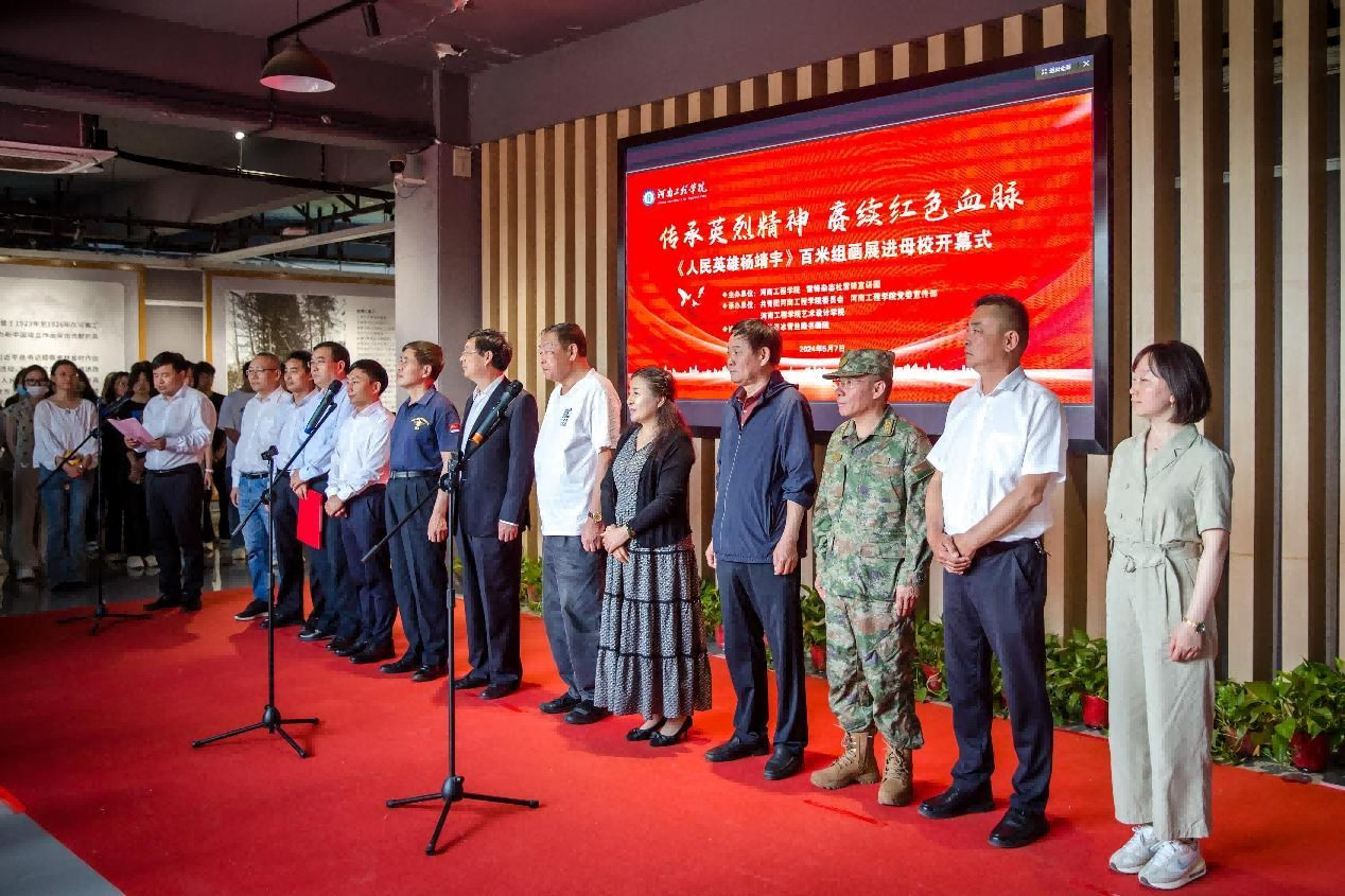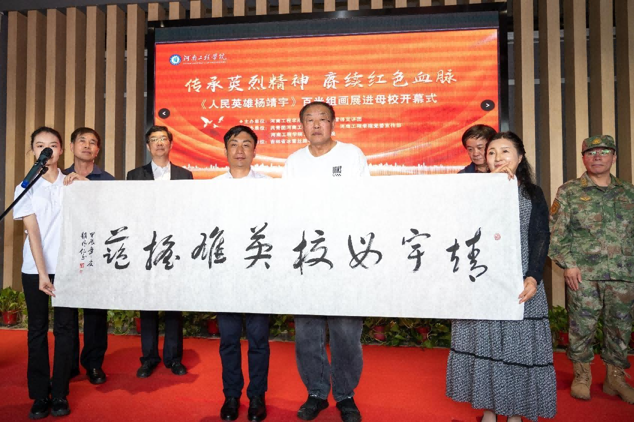 著名画家、人民大会堂特邀画家、吉林省冰雪丝路书画院院长、《人民英雄杨靖宇》百米组画主创者赵明仁,吉林省冰雪丝路书画院秘书长孙桂丽,军旅书画家、中央电视台书画频道驻吉林记者站原站长张华成,雷锋杂志社雷锋宣讲团团长、解放军报社原高级编辑卜金宝,雷锋杂志社雷锋宣讲团秘书长刘晓永,雷锋杂志社河南工作部主任刘涛,原河南省工业和信息化厅一级巡视员聂春山,军事医学科学院驻河南主任朱洪,杨靖宇将军之孙、我校校外辅导员马继民,省新华书店发行集团有限公司张丽娜,校领导刘永涛、刘超、赵红亮等出席开幕式,各单位负责人及师生代表参加开幕式。开幕式由校党委副书记赵红亮主持。