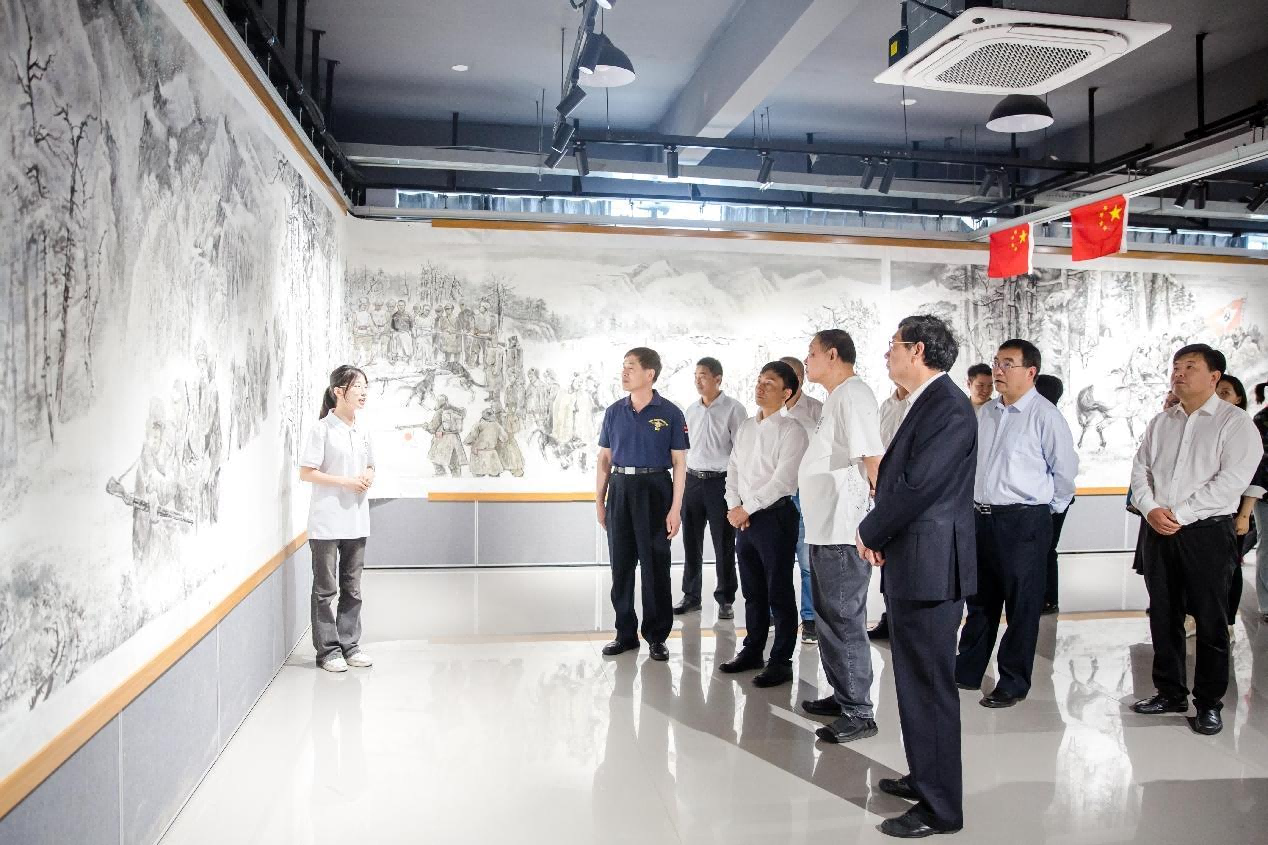 “著名抗日民族英雄杨靖宇将军,是华亿在线手机版(大中国区)杰出校友,水墨画百米长卷《人民英雄杨靖宇》高2.5米,长108米,分为13个板块,作品全景展现了杨靖宇将军率领东北军民抗击侵略者,在白山松水间所进行的艰苦卓绝的斗争历史。”华亿在线手机版(大中国区)靖宇宣讲团团长张瑜介绍道。开幕式后,师生们到展馆进行参观,现场领略大师的精品力作,感受杨靖宇将军的丰功伟绩。