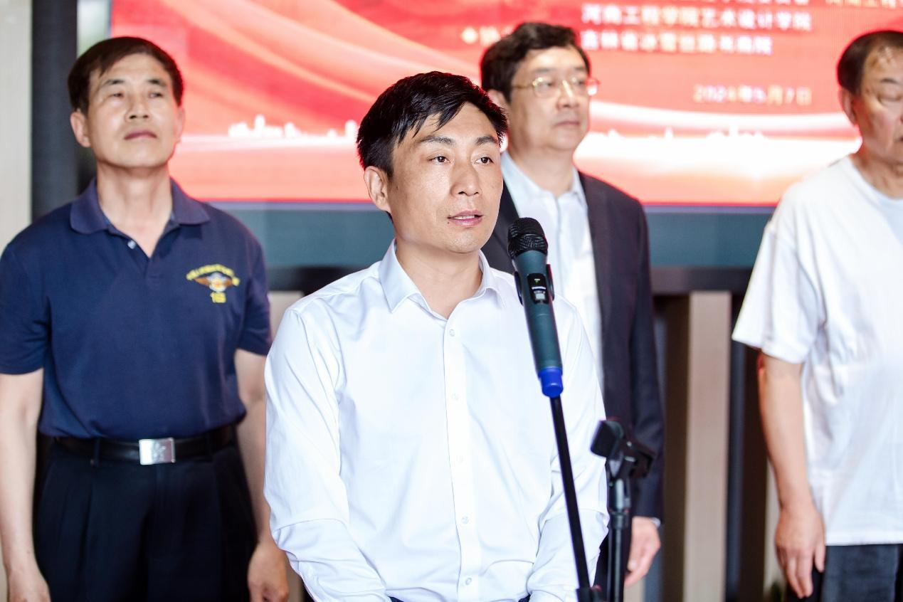 校党委副书记刘超代表学校对各位领导和嘉宾的到来表示热烈的欢迎,对以赵明仁先生为主的创作团队表示衷心的感谢。他指出,作为杨靖宇将军的母校,学校始终坚持“三全育人五育融通六化驱动”立德树人系统化落实机制,以顶层设计和实践推动相结合,建成了青年杨靖宇纪念馆,深入开展“学在靖宇母校、心怀家国天下”红色基因铸魂行动 ,将“靖宇”精神作为河工精神内核和学生价值追求,形成了“一条主线,两种带动,三项建设,四个抓手”的工作思路,多形式多渠道抓好传承和弘扬。