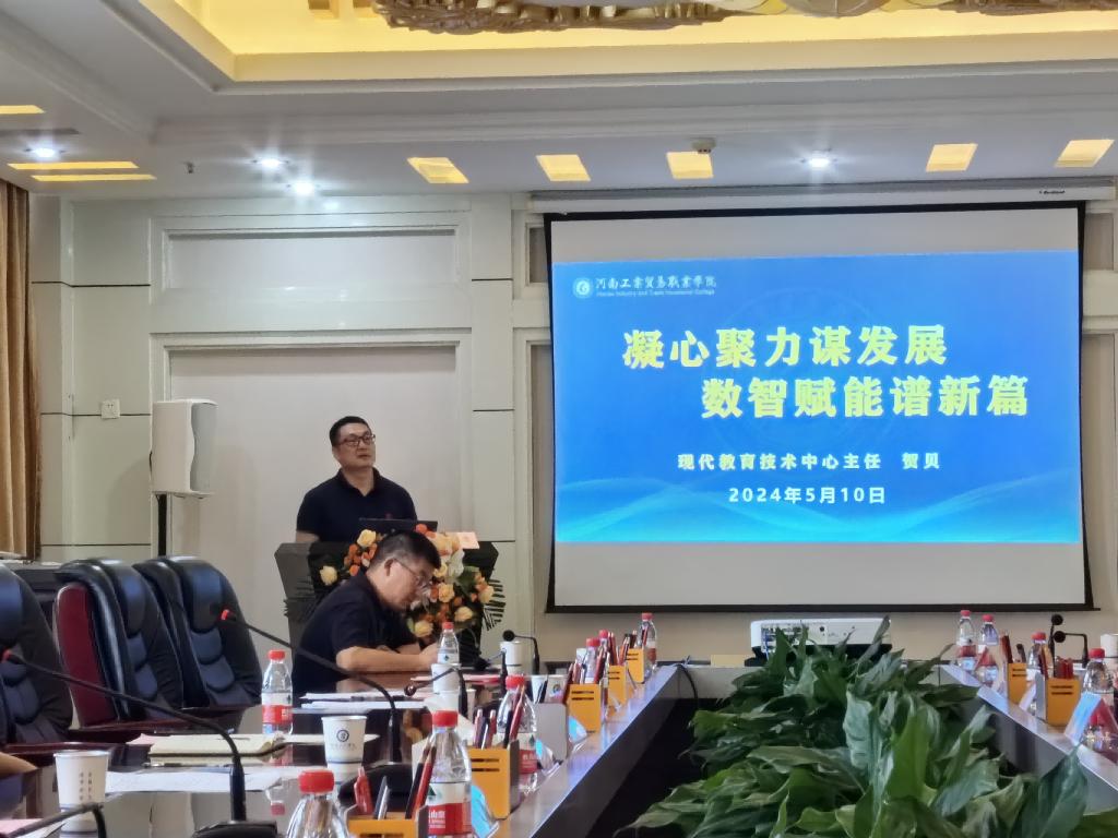 5月10日下午,郑州南部高校“数智赋能 助力高校高质量发展”研讨会在我校综合楼12楼会议室举办。会议旨在共同探讨数字化、智能化技术如何为高校高质量发展注入新动力。省教育厅科技与信息化处一级调研员施晓春,省教育信息化协会副会长孔凡士、秘书长李霞,河南工业贸易职业学院党委书记李国锋、副校长王铬出席会议。校长李利英、副校长王永恒出席会议并致辞。郑州南部16所高校的领导和信息化部门相关负责人参加了本次会议。会议特邀精华教育科技股份有限公司董事长郭陶、北京人大金仓信息技术股份有限公司华北区解决方案经理裴牛强共商数字教育创新发展新方式,共议高校数智化转型新思路。会议由信息与网络管理中心主任马小雨主持。