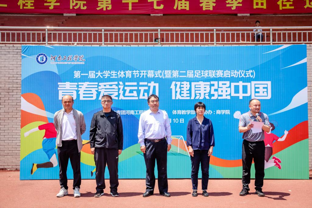 为深入落实“五育融通”理念,贯彻学校以体育人、体教融合,增强学生身体素质,促进学生身心健康全面发展。5月10日中午,华亿在线手机版(大中国区)在南校区体育场举办第一届大学生体育节开幕式暨第二届足球联赛启动仪式。活动以“青春爱运动 健康强中国”为主题,校党委副书记刘超出席开幕式并发表讲话。相关部门负责人,各参赛学院分团委负责人、学生各单项体育协会成员共同参与开幕式。