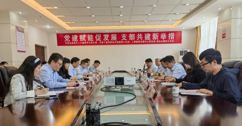我校博士代表围绕我省高层次人才科研项目资助、创新创业服务、高层次和急需紧缺人才职称评审以及国际人才服务方面与中心领导进行了深入研讨,并积极建言献策。会上,河南省高层次人才中心党支部与我校人事教师发展中心党支部以优势互补、经验互鉴,建立业务协同联办机制为目标,共同签署“党支部结对共建协议”,旨在以党建高质量发展推动高层次人才服务取得新质效。