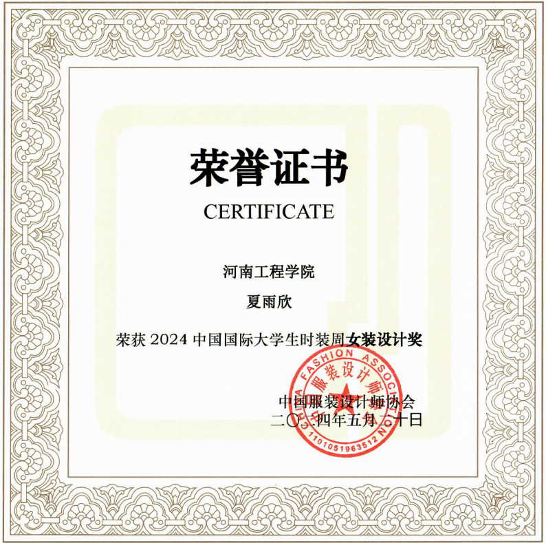 5月20日晚,2024年中国国际大学生时装周在北京圆满收官,清华大学、北京服装学院等52所高等院校,千余位设计师参与发布与评奖。我校荣获2024中国国际大学生时装周人才培养成果奖,服装学院服装与服饰设计2045锦荣班夏雨欣荣获2024中国国际大学生时装周女装设计奖。