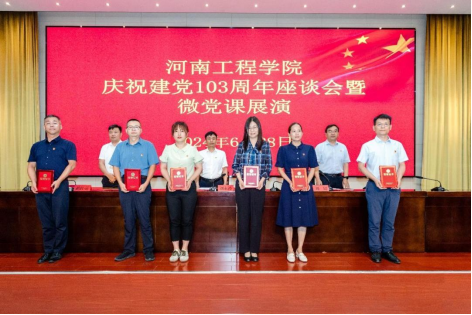 与会校领导为微党课一二等奖获得者颁发了聘任证书,为优秀共产党员、党务工作者、先进基层党组织代表进行了颁奖。