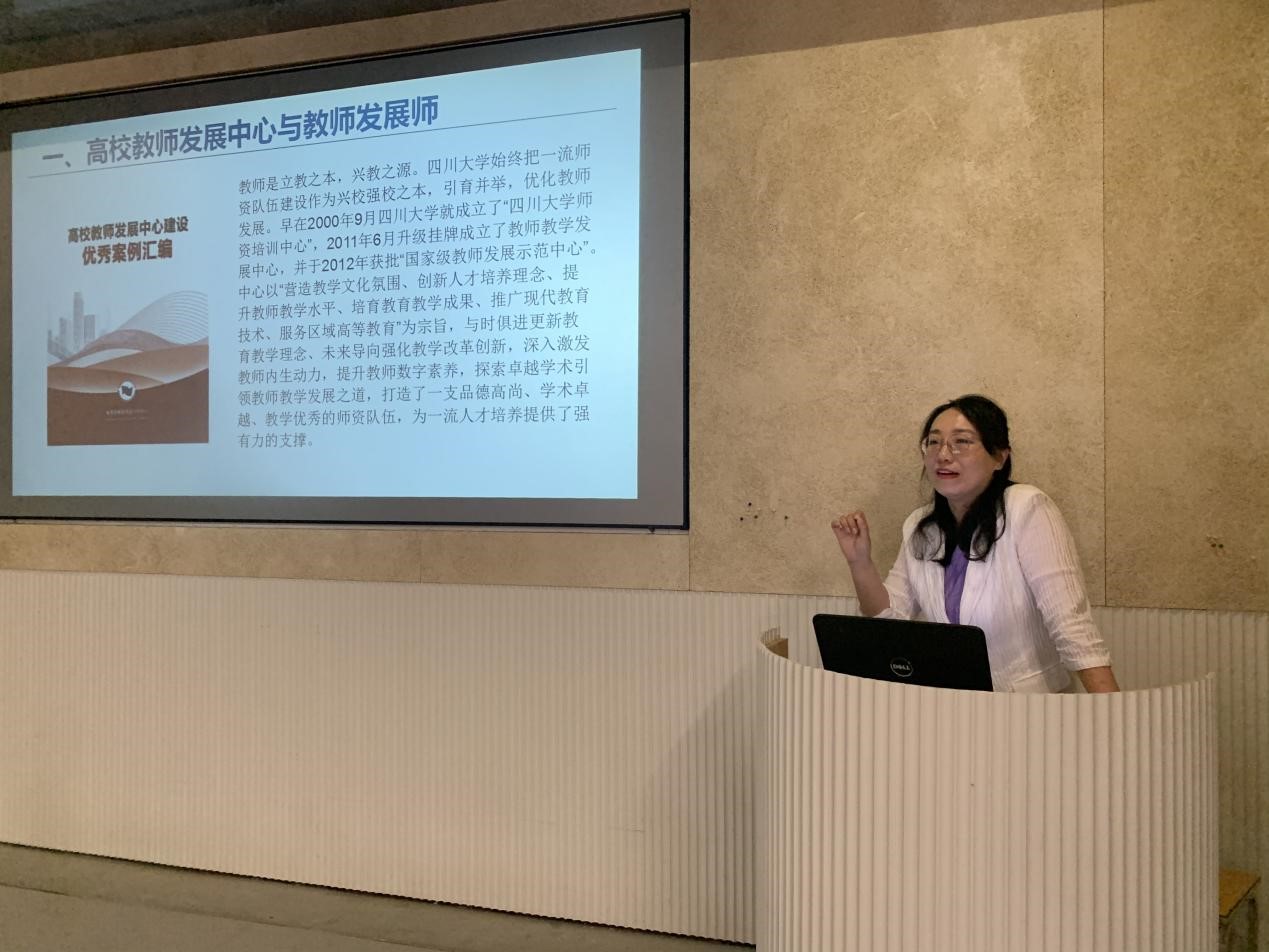 仪式结束后,河南财经政法大学刘媛教授开展了题为“教师发展师的成长与长成”的讲座,详细讲解了高校教师发展师的内涵与作用,并就教学理念的深化与更新以及教学技能的提升,给出了切实可行的方法与建议。讲座结束后,参会人员围绕教师发展工作展开了深入的研讨。他们就教师发展师的职责定位、培训开展、组织保障等方面进行了深入的交流,整个座谈会交流深入、气氛热烈,为教师发展工作提供了宝贵的建议。