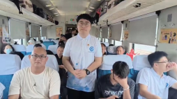 列车上,校靖宇宣讲团成员,软件学院李佩珂、王硕同学在列车上下沉式讲述我校杰出校友杨靖宇的英雄事迹,赢得乘客们的热烈掌声。