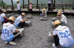 7月8日上午,志愿服务队先后来到红旗渠建设体验实训基地、青年洞、红旗渠纪念馆追寻习近平总书记的足迹,去感悟林县人“誓把山河重安排”的豪情壮志,在弘扬红旗渠精神中学习榜样、涵养情怀。在这里队员们亲身参与到红旗渠的修建过程中,通过打钎、推车、挑担等简单的劳动,体验当年林州人民的艰辛与坚韧。队员们不禁感慨当年修渠的艰辛,如今幸福生活的来之不易。一锤,一钎,一转,真的是劳动人民用智慧和汗水创造了不朽的精神丰碑!