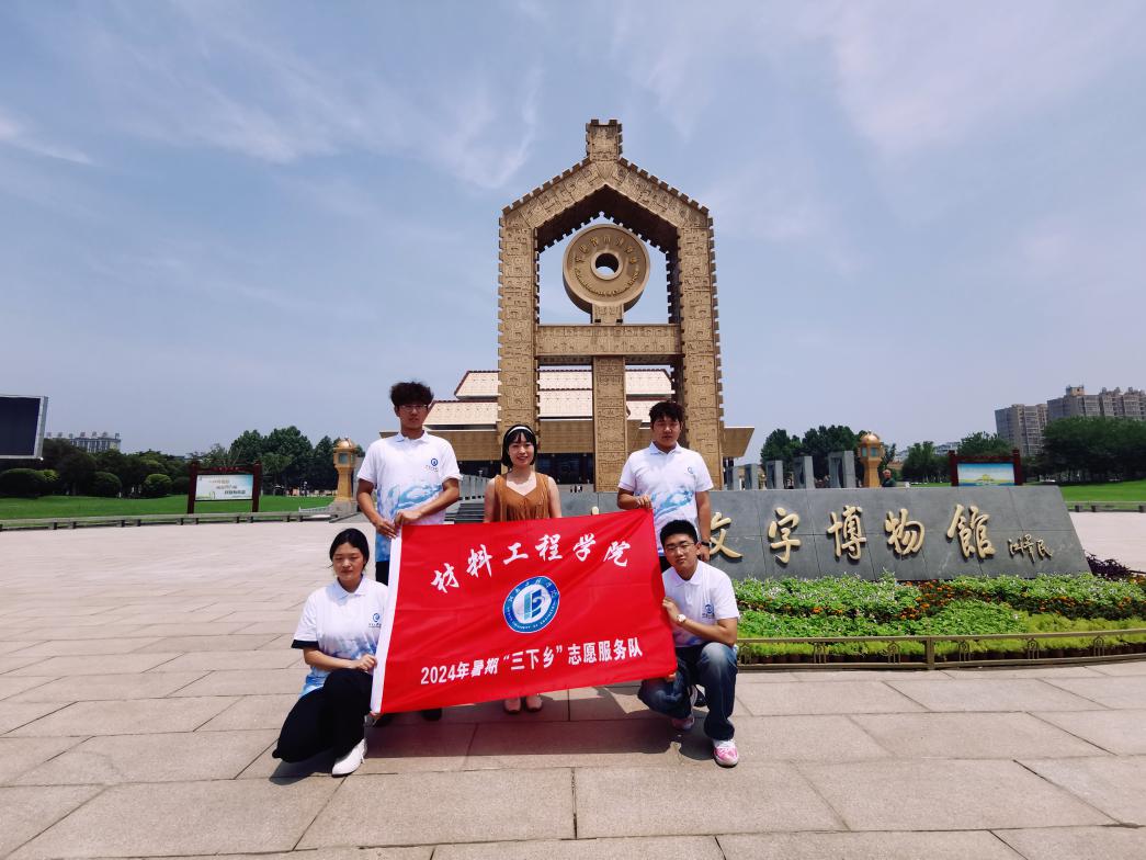 7月6日、7日,材料工程学院“传承华夏文明,共筑文化强国梦”暑期社会实践团在辅导员老师刘珈宁的带领下,走进七朝古都——安阳,探寻中华优秀传统文化,传承红色精神。团队成员们先后参观了殷墟宫殿宗庙遗址、殷墟王陵遗址、中国文字博物馆等地。在参观过程中,团队成员仔细观察每一件珍贵的文物,深刻感受到了殷商时期的灿烂文明以及甲骨文的风采和中国文字所具有的独特魅力, 他们还积极与讲解员深入交流,了解殷墟的发掘历程、文化内涵以及对于中华文明的重要意义。