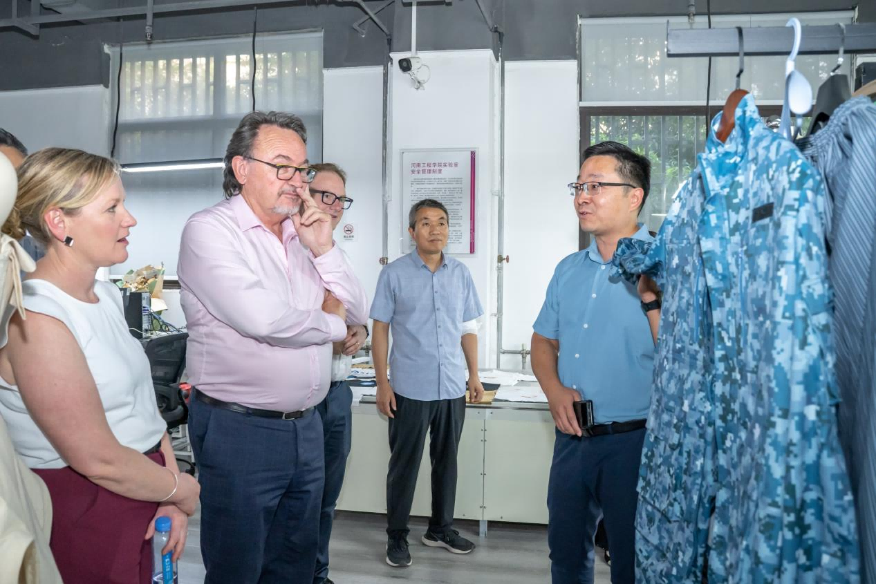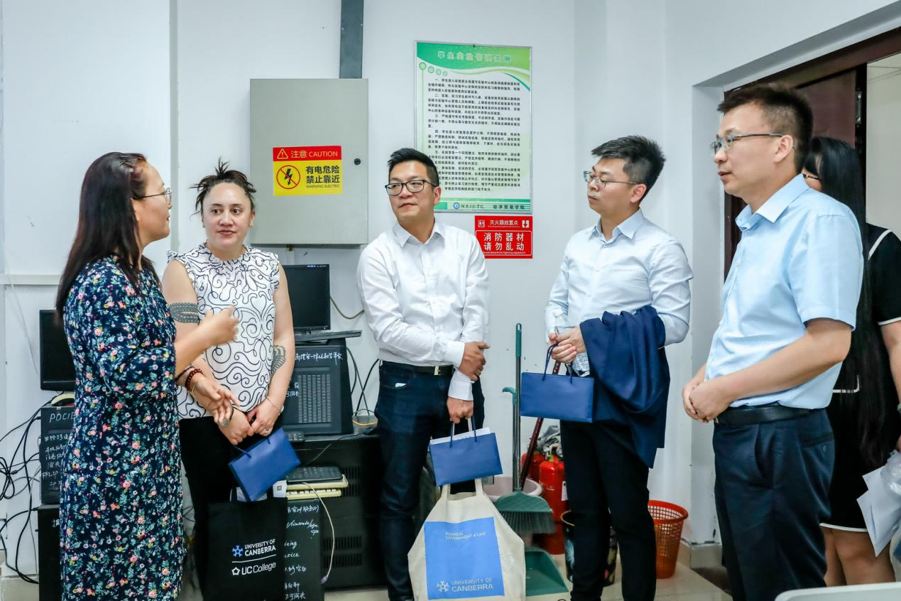 堪培拉大学代表团一行还参加了中澳合作办学项目新生家长会及项目宣讲会,实地走访了国际教育学院、服装学院、计算机学院、软件学院、会计学院、经济贸易学院、艺术设计学院等多个学院的专业实验室、实训室,围绕专业教学、课程共建、师资交流、校企合作等方面与相关学院负责人进行深入交流。