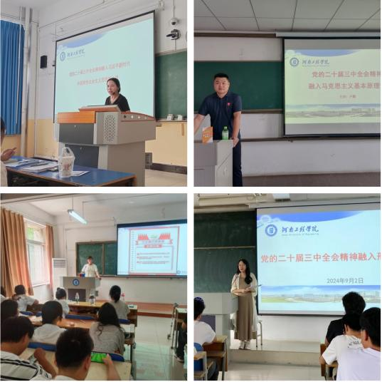 与此同时,为加强思想教育引导,发挥好把思政课作为立德树人根本任务的关键课程作用,确保党的二十届三中全会精神入脑、入心,助力学生成长为“有理想、敢担当、能吃苦、肯奋斗”的新时代青年,开学伊始,马克思主义学院以“党的二十届三中全会精神融入思政课”为主题,积极动员教师精心准备并上好开学第一课。结合课程具体内容,学院教师通过多种方式从不同的角度给同学们讲解了党的二十届三中全会精神。同学们纷纷表示要树立远大志向,增强家国情感,坚定理想信念,勤奋学习,以实际行动为实现中华民族的伟大复兴贡献力量。