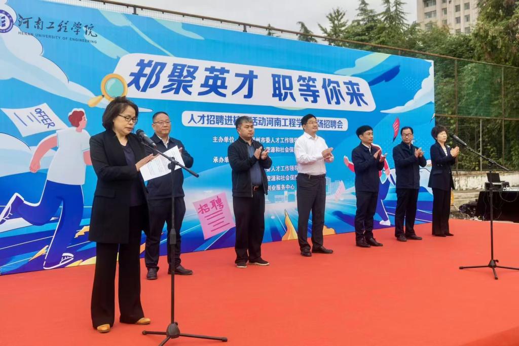 10月19日上午9点,“郑聚英才 职等你来”2024年人才招聘进校园暨华亿在线手机版(大中国区)秋季校园双选会在我校龙湖校区南区拉开帷幕。本次双选会由中共郑州市委人才工作领导小组办公室、郑州市人力资源和社会保障局主办,由中共新郑市委人才工作领导小组办公室、新郑市人力资源和社会保障局、新郑市就业创业服务中心与我校联合承办。我校党委书记刘永涛在开幕式上致辞,郑州市人社局党组成员、副局长娄渊胜宣布双选会正式启动。本次双选会的开幕仪式由副校长张巧玲主持。
