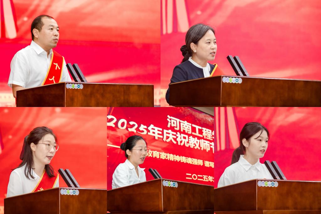 获奖教师代表刘付军、孙艳萍、常卓分别进行了典型发言,全省教育系统师德征文一等奖作者徐晶晶深情讲述了刘道伟在平凡岗位上默默耕耘的师德故事,学生代表赵漫璐为教师献上节日祝福。