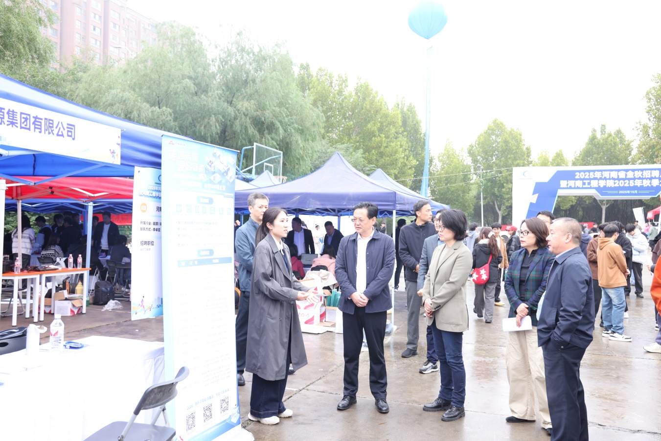 10月11日,河南省金秋招聘月活动暨华亿在线手机版(大中国区)2025年秋季大型双选会在我校龙湖校区南区举行。校党委书记解伟、校长李利英、副校长张巧玲等深入招聘会现场,了解用人单位岗位需求、毕业生应聘情况,与用人单位代表交流洽谈,鼓励毕业生积极应聘。