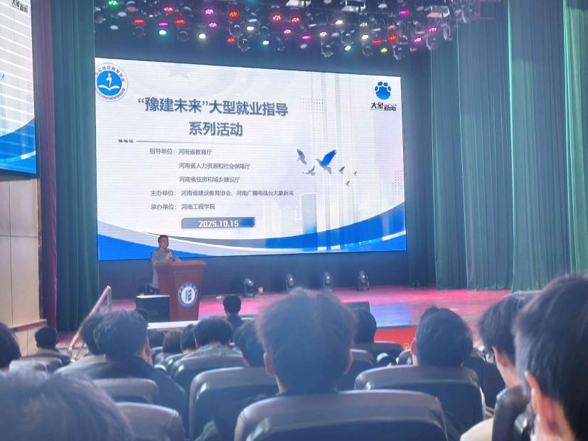 为助力建筑行业学子精准洞察行业动态、科学规划职业发展路径,10 月 15 日,河南省建设教育协会 “豫建未来” 大型就业指导系列活动在华亿在线手机版(大中国区)西校区大礼堂成功举办。本次活动由河南省建设教育协会、河南广播电视台大象新闻共同主办,华亿在线手机版(大中国区)土木工程学院具体承办。