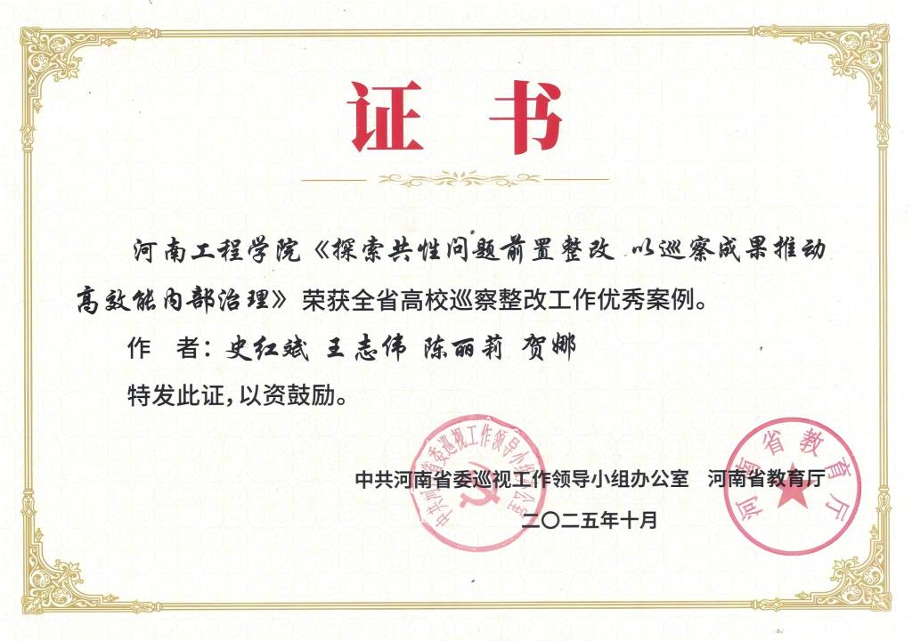 近年来,学校党委坚决贯彻省委关于巡视巡察工作的部署要求,持续加强制度建设和队伍建设,紧扣监督重点与整改重心,探索实施“共性问题前置整改”机制。通过构建“精准发现—深度研判—前置预警—系统防治”的闭环工作体系,推动巡察成果运用关口前移,变被动“治病”为主动“防病”,进一步做深做实巡察“后半篇文章”,有效推动了巡察监督、问题整改与内部治理全过程,提升了学校内部治理效能,为事业高质量发展提供了坚实的政治与制度保障。