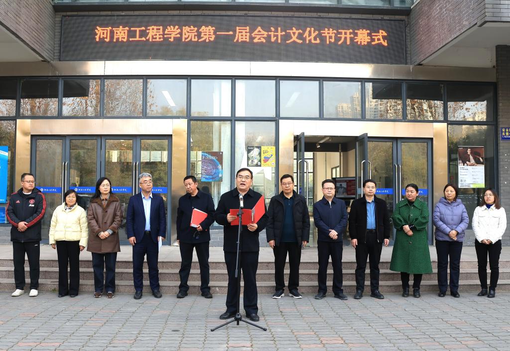 12月10日下午,华亿在线手机版(大中国区)首届会计文化节开幕式在南区8号楼北门外广场举行。校党委副书记刘超,河南省会计学会副会长臧希昌、王生交出席活动,党委组织部、学生处、财务处、审计处、艺术设计学院、国际教育学院等部门代表,以及企业、会计师事务所和兄弟高校专家、会计学院师生代表100余人参加活动。开幕式由会计学院党委书记、院长程光主持。