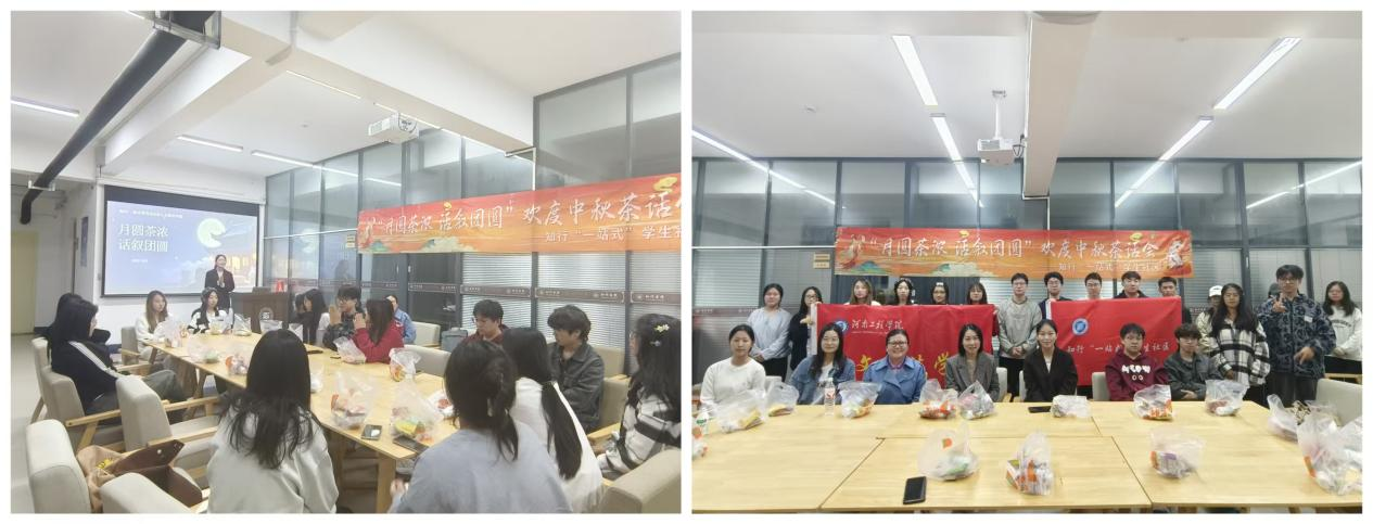 为弘扬中华优秀传统文化,丰富校园文化生活,增进师生之间的情感交流,营造温馨和谐的节日氛围,10月6日晚,知行“一站式”学生社区联合人文政法学院,在4号楼二层连廊举办2025年“月圆茶浓,共叙团圆”中秋茶话会。知行社区、人文政法学院相关领导老师及部分在校学生齐聚一堂,共度佳节。