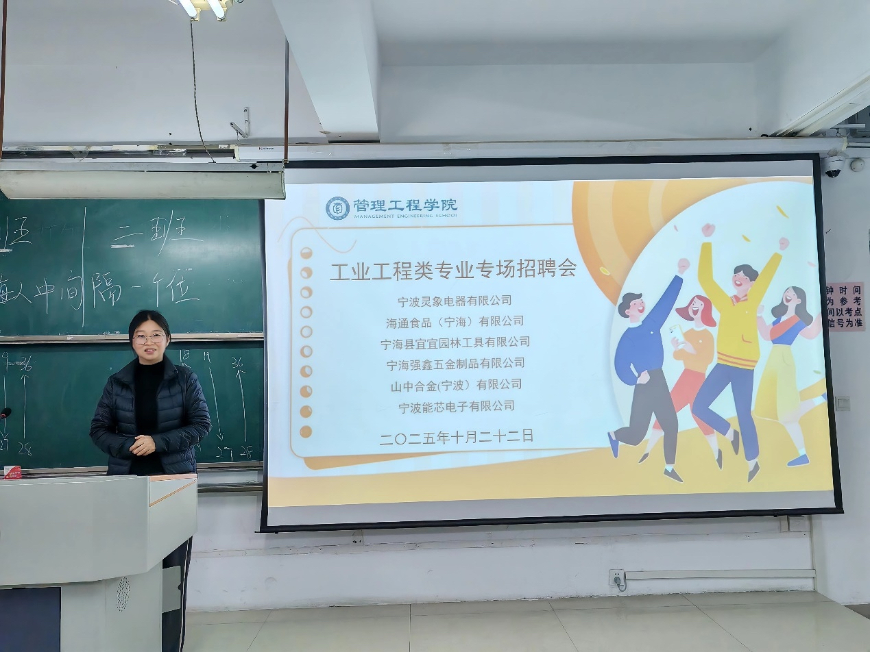 参加专场招聘会的6家优质企业均来自浙江省宁波市,涵盖电子、电器、设备、五金工具、食品等多个行业领域,提供了近50个工作岗位,包括工业工程师、质量工程师、物流工程师、精益改善专员、生产计划专员、管培生等岗位,与学院工业工程类毕业生的专业方向高度契合。