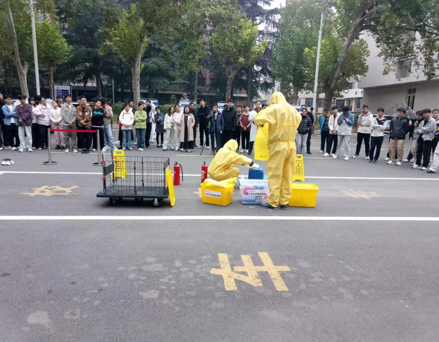 为切实提升我校师生实验室危化品安全事故应急处置能力,筑牢校园安全防线,10月29日,实验室管理处在桐柏路校区组织师生开展实验室危险化学品泄漏应急演练活动。