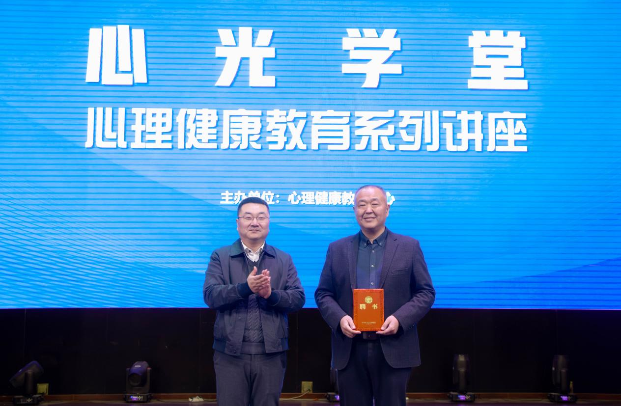 讲座结束后,介翔部长代表学校向岳晓亮老师颁发校外指导教师聘书,并在总结发言中强调,面对当前大学生群体面临的多重压力与价值挑战,加强心理健康教育是落实立德树人根本任务的关键环节。学校将“心光学堂”系列讲座作为深化“三全育人”的重要举措,旨在通过系统化培训帮助师生增强心理韧性,培育理性平和、积极向上的健康心态。